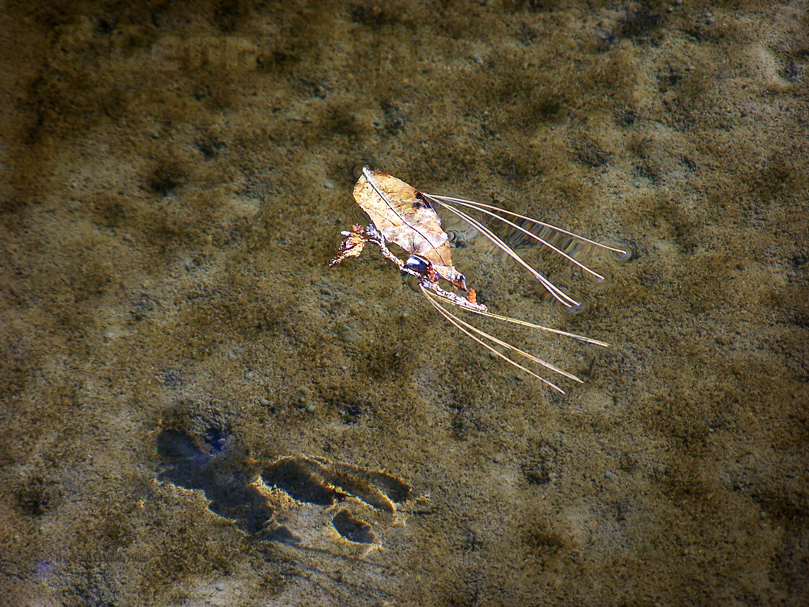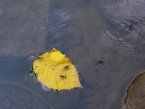 Read more..Leaf with waterbugs and ripples. Horizontal 2576px X 1932px 1.78 MB