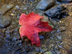 Read more..Leaf draped on rock at creek edge. Horizontal 2576px X 1932px 3.14 MB