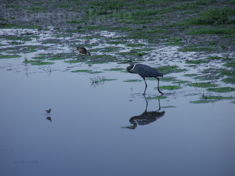 Read more..Great blue heron with reflection. Horizontal 2576px X 1932px 2.44 MB