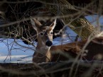 Read more..Deer peering through branches. Horizontal 2576px X 1932px 1.94 MB